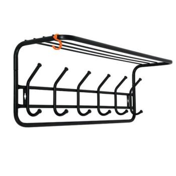 Прочный каркас из металлических труб.Пять двойных крючков с защитными пластиковыми колпачками.Допустимая нагрузка на крючок – до 5 кг.Удобная полка для головных уборов.Дополнительный пластиковый крючок для мелочей.Изделие поставляется в разобранном виде в картонной коробке с ручкой.Простая сборка, без применения инструментов.Крепеж к стене не входит в комплект фурнитуры!