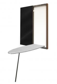 Астра Мини Стекло – это встроенная гладильная доска с опорной ногой, скрытая в тонком (всего 10 см) настенном шкафчике с непрозрачным стеклом Lacobel черного или белого цвета, размер 50х116 см.
