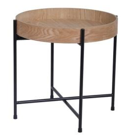Лаконичный журнальный столик Стар. Круглая столешница выполнена из МДФ и покрыта шпоном из ясеня. Высокие бортики по краям предотвращают падение предметов со столика и добавляют удобства при использовании. Металлический каркас в черном цвете выдерживает нагрузку до 50 кг. Столик станет практичным дополнением интерьера спальни или прихожей.