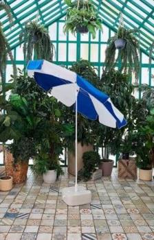 Зонт BREEZE 200. Диаметр купола 2.0 м, высота 2.2 м, 10 стальных спиц. Диаметр спиц 3.8 мм. Ткань купола — полиэстер 200 гр. Края купола выполнены с воланом.